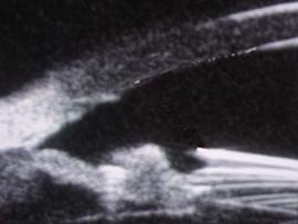 5、超声生物显微镜(UBM)结果:术后6月人工晶体与角膜内皮最短距离1.97±0.07mm;与自身晶体0.67±0.07mm;人工晶体上方与角膜内皮面最短距离1.27±0.15 mm;鼻侧与角膜内皮面最短距离1.41±0.12 mm;下方与角膜内皮面最短距离1.55±0.13 mm;颞侧与角膜内皮面最短距离1.45±0.10 mm。(下图5-10)
