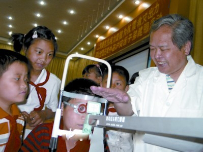 闵行区蔷薇小学有128名四川籍民工子弟,他们家里大部分都遭受了程度不同的地震破坏和损害。日前,奥克拉视力复健中心派出专家为学生作了免费视力检查,并为一批远视性弱视的学生进行视力复健训练。