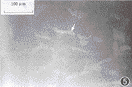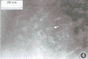 3.基质细胞层:在图像的暗背景下被衬托出发亮的细胞核,核间有不定形的黑色背景分割。细胞核的形态为成骨细胞状、纺锤状及椭圆形,窥不清细胞胞浆、细胞边缘及板层胶原。基质细胞的密度以Bowman膜下的最高(图4)。由表1可见,A组与B、C组之间的前基质细胞密度差异有显著性(F5=3.641,qAB=4.51, qAC=2.49, P<0.05),B、C组间前基质细胞密度差异无显著性(qBC=2.48, p>0.05)。近后弹力层的深基质密度降低(图5),由表1可见。A组与B、C组之间的后基质细胞密度差异有显著性(F6=4.12, qAB=3.81, qAC=5.12, P<0.05),B、C组间后基质细胞密度差异无显著性(qBC=3.22, p>0.05)。各年龄组内前基质细胞与后基质细胞之间差异有显著性(tA=2.89, tB=3.135, tC=2.92, P<0.01)。另外,在前中基质层可见粗大的分支状的神经干。