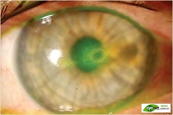 该患者2年前接受手术并出现视力下降,经诊断为轻度黄斑囊样水肿后她还曾感觉眼痛。 一位69岁女性患者被转诊到新英格兰眼科中心的角膜组进行诊治。 这位患者由于2年前接受了白内障手术后出现右眼进行性视力丧失而在新英格兰眼科中心的神经眼科组随访。手术后,患者发现手术眼视力下降。经过眼底检查,发现视网膜前膜的存在。经睫状体平坦部的玻璃体切割及剥膜手术进行后5个月,这位患者来到新英格兰眼科中心,而其视力并没有改善。 检查
