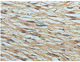 图8 例1.S-100蛋白免疫过氧化物酶染色显示核及胞浆为强阳性(放大倍数×160)