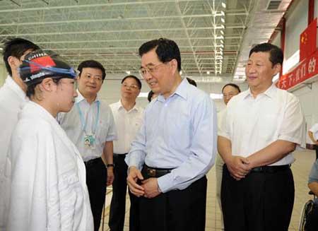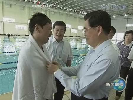 离开中国残疾人奥林匹克运动管理中心,胡锦涛一行专程来到北京市西城区什刹海街道残疾人温馨家园,考察这个社区为残疾人提供服务的情况。回良玉、刘淇、令计划、王沪宁、邓朴方等参加考察。