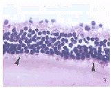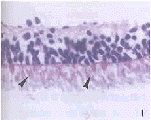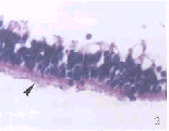 arrows indicate photoreceptors with good inner and outer segment(HE×400) Fig.3 Photoreceptor sheets ablated by regular excimer laser