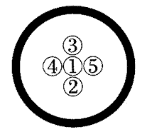 1.3.2 角膜内皮细胞观察和计数 将固定好的角巩膜片内皮面朝上置于载玻片上,用眼科剪沿1∶30、4∶30、7∶30、10∶30方位垂直角膜缘剪开角巩膜片周边后,内皮面上放置盖玻片,轻轻加压使角巩膜片铺平,胶布固定后,显微镜下观察内皮细胞的形态和边界。每一角膜片的切削区中央和周边5区(如图1),分别计算20×物镜下内皮细胞数,将5区的内皮细胞数平均,即为每一角膜20×物镜下的平均内皮细胞数。