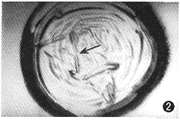 图1,2 轻划开Descemdt膜,基边缘上郑剥离×20