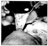 图9 组织瓣被转位到游离的后层植片上。显示这种组织瓣较例1中的颅骨膜瓣厚许多