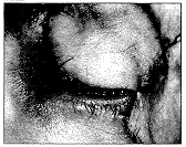 重建设计是先用帽状腱膜颅骨膜瓣覆盖角膜,并计划植入组织扩张器16来补充修复手术最后阶段所需的皮肤。组织瓣覆盖于巩膜植片上,并用板层皮片覆盖于组织瓣的帽状腱膜表面,然后将这些由复合组织形成的上睑与下睑作睑裂缝合。6个月后用硬腭粘膜和扩张的皮肤最终完成上睑重建。