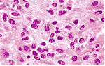 图6 围绕梭形细胞黑色素瘤的痣细胞的脱色切片显示有丰富的细胞浆及不明显的核特征的细胞。与图5的黑色素瘤相比,有少量细胞浸润(漂白,原大×250)