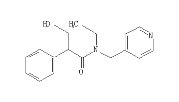 本品主要成份为托吡卡胺,其化学名称为N-乙基-N- (4-吡啶甲基)-α-(羟基甲基)-苯乙酰胺