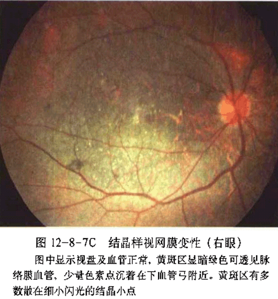 眼睛,中华眼科在线,结晶样,视网膜变性,眼科图谱