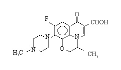 本品主要成份为氧氟沙星。其化学名称为:(±)-9-氟-2,3-二氢-3-甲基-10-(4-甲基-1-哌嗪基)-7-氧代-7氢-吡啶并(1,2,3-de)[1,4]苯并犩?6-羧酸。