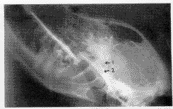 retrocatheterism was filling well on X-ray plate犬眼动脉逆行插管注造影剂X光片见眼动脉充盈良好.