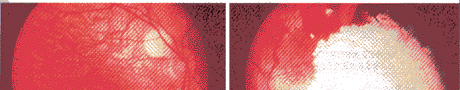 紧邻视盘和中心凹的肿瘤和较大肿瘤(>6mm)应用手术显微镜系统治疗。较小的或位于黄斑周围的肿瘤应用间接检眼镜系统治疗。在锯齿缘的小肿瘤应用间接检眼镜系统或经巩膜探针治疗。