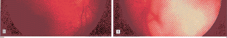在全身麻醉下,应用被特别改造的二极管系统传递红外线(810mm)进行温热治疗。传递或者经过瞳孔,或者经过巩膜。经瞳孔传递方法采用经过手术显微镜上的接合器和广角接触镜传递的红外线进行,或者应用经过间接检眼镜上的接合器和20D的透镜传递的红外线进行。在两种情况下都需要散大瞳孔。手术显微镜可以提供0.8、1.2、和2.0mm的光斑直径,而间接检眼镜提供1.2mm的光斑直径。可用的最大光斑直径被用做覆盖正常组织,而不是延伸到正常组织。经巩膜传递方法利用一个特殊的手持接合器,通过巩膜的压陷联合间接检眼镜和一个20D的透镜传递光斑直径为1.0mm的红外线。所有方法的终点是经过1到5分钟肿瘤出现弥漫性轻度的灰色改变,没有引起血管痉挛和快速的肿瘤苍白。一般而言,初始功率为200mW,每次增加或减少50mW,直至观察到肿瘤充分地缓慢发生改变。