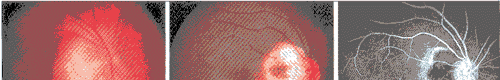 在最近的诊查中,被记录的资料包括最终视力和视力下降的原因。肿瘤经过以下评价:基底直径(mm)、厚度(mm)、消退类型(0级:没有可见的肿瘤瘢痕;Ⅰ级:完全钙化的肿瘤瘢痕;Ⅱ级:完全无钙化的肿瘤瘢痕;Ⅲ级:部分钙化和部分无钙化的肿瘤瘢痕;Ⅳ级:无残余肿瘤的扁平视网膜脉络膜萎缩)1、肿瘤状态(消退、复发或无变化)和复发的治疗(化疗、放疗、激光光凝、冷凝疗法和温热治疗)。眼部并发症和全身情况也被记录。