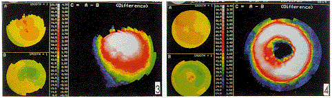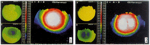 自1983年,Trokel等[3]将准分子激光用于角膜屈光手术以来,其技术迅速发展。为了更准确地分析PRK手术前后的角膜屈光性状及其与PRK效应的关系,许多眼科医师已将角膜地形图用于PRK手术疗效的评价,并证实为一种有效的工具[2,4~6]。早在角膜地形图仪问世以前,人们对于角膜屈光性状的了解主要依赖于角膜曲率计。由于角膜曲率计仅能反映角膜中央3mm内的4个数据点,且测得的散光是假定角膜为对称体,而实际上,角膜多数情况下为非球面体,因而使对角膜屈光性状的认识受到很大程度的限制。角膜地形图的问世,使系统地、准确地定量分析角膜的形态和性状成为可能[7,8]。因此,在PRK术后,通过角膜地形图的定量分析,可以使人们对PRK术后角膜屈光效应的研究产生突破性进展:即从点到面,从定性到定量,从不可预测向可预测过渡,并指导手术的设计。