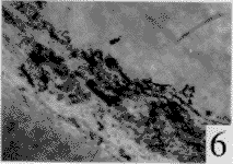 2.3.2 透射电镜 对照组:晶体后囊前可见单层排列的晶体上皮细胞,超微结构无异常改变(图5)。用药组:各浓度组晶体后囊无明显晶体上皮细胞(图6)。