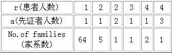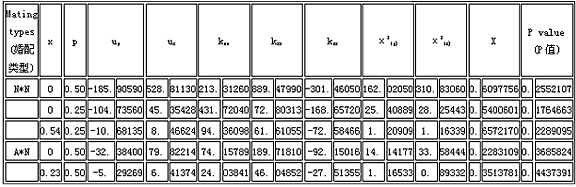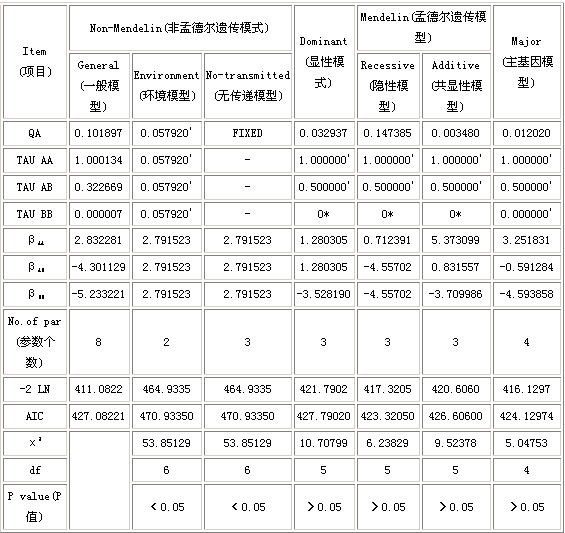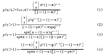 近视眼在临床按病因可分为病理性近视和单纯性近视两种主要类型。其中病理性近视眼又称高度近视或恶性近视(pathological myopia, PM),指的是屈光不正在6 D以上,并伴有眼轴延长和眼底萎缩变性等病变,是危害中青年视力健康的一种重要疾病,至今病因未明1]。我国病理性近视眼的患病率高,群体调查患病率为0.95%,而在上海市进行的一项小范围调查发现患病率为6.98%,群体调查其遗传模式偏向于常染色体隐性遗传[2]。以往的分析方法精确度较低,未估计散发病例的比例。为此,我们采用简单分离分析和复合分离分析等方法,对病理性近视眼可能存在的遗传方式进行研究。 1 对象和方法 1.1 对象 临床诊断为病理性近视眼的上海市患者(均经小瞳孔检测和主觉云雾验光法检测确定屈光度为-7.00 D~-20.00 D不等,眼底检查伴有近视性病变)。 1.2 方法 1.2.1 调查方法 以面访结合家访为主,通过先证者对病理性近视眼患者家系进行回顾性调查,包括一般情况和家族史等。 1.2.2 遗传分析 根据患者父母的婚配类型将调查的家系分为(1)N*N:父母双方表型正常;(2)A*N:父母中一方为患者。 1.2.3 分析方法 简单分离分析:应用Morton分离分析的数学模型进行参数的假设检验及最大似然值估计[3,4],分析中涉及的参数主要有:确认概率π,为患者是先证者的概率;分离比p,为患者在同胞中的分离频率;x为散发病例的比例。用下列(1)、(2)、(3)、(4)公式进行参 数的假设检验及最大似然值估计。