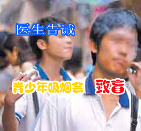 英国的医生们决定跟青少年再明确重申一次:吸烟会致盲。英国一家医院建议把“吸烟会致盲”的警示语印到烟盒上,以提高青少年的戒烟意愿。这所大学访问了260名16至18岁的青少年,发现30%的人知道吸烟会导致心脏病,但只有5%的能清楚指出烟草和视网膜黄斑病变有关——后者正是造成长者失明的一个主要原因。