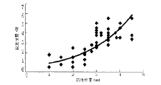 2.2 44眼散光眼的散光度数与胬肉长度关系的分布情况见附图。从附图的趋势线中可见,散光度与胬肉侵犯角膜的大小有关,其总的趋势是随着胬 肉长度增加而增加。经相关统计(SPSS统计软件)分析,相关有显著意义(r =0.760)。在胬肉 侵入角膜缘1~2.5毫米时,其与散光的相关系数是0.306,为低度相关;2.5~3.0毫米时, 相关系 数是0.775,为高度相关;3.0~4.5毫米时,相关系数是0.245,相关无显著意义。