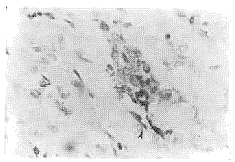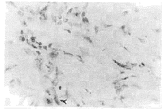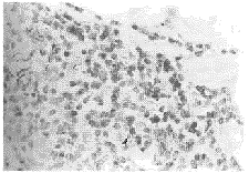 Figure 1 Significant expression of HLA-DR on infilltrated lymphocyte ×400 浸润淋巴细胞HLA-DR特异性染色