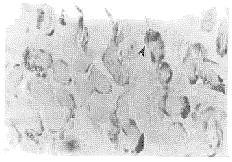 Figure 3 Significant expression of HSP-70 on extramuscle ×400 肌细胞HSP-70特异性染色