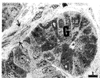 shows nerve fiber;G:glandu lar epithelial cells.×1000.Bar 5μm