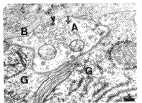 Fig.4 A nother type of synapse between axons ter minal (A) and