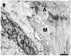 Fig.3 Synapse between axons terminal (A) and myoepithelial cells(M).
