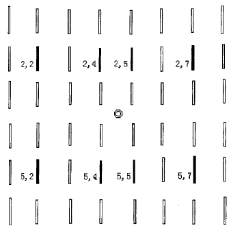 从48根条状 视标中,选取(2,2)、(2,4)、(2,5)、(2,7)、(5,2)、(5,4)、(5,5)、(5,7)共8个 位点进行刺激。刺激方式包括1~5个象素不同运动幅度的位移及一种18 Hz的闪烁刺激。所有检查均在自然瞳孔下,矫正达到最佳视力。受检者距离屏幕60 cm,要求病人固视屏幕中央的固视点,发觉条状视标运动时,即按动鼠标反应器,计算机根据受检者对运动刺激的反应,得出每个位点的运动阈值,记录并与正常值进行比较。