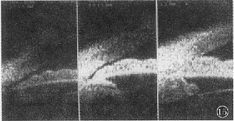 15 周边虹膜厚度分级:偏薄型 (左图) : 周边虹膜极薄;中间型 (中图) : 周边虹膜厚度介于型之间;肥厚型 (右图) : 周边部虹膜肥厚