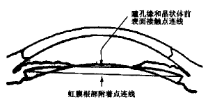 图17 瞳孔缘相对位置(指瞳孔缘和晶状体前表面接触点连线与虹膜根部附着点连线的相对关系)