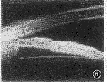 6 单纯性非瞳孔阻滞周边虹膜肥厚型闭青, 在明亮光照度下, 见瞳孔缩小, 周边虹膜拉长变薄, 房角增宽开放