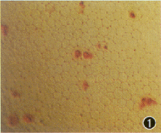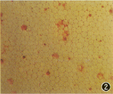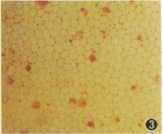 %26#11;图4 Optisol液保存20d的兔角膜内皮细胞台盼蓝 -茜素红染色×100