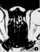图3 平行于视神经的斜位MR成像
