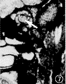 3.视力的恢复与MRI病灶修复不一致。本组5例经糖皮质激素治疗后视力均提高6行以上,此时行MRI检查均显示视神经异常高信号,据此推迟激素减量,最后视力提高到1.0以上,最佳达1.5。此外11例中10例经Gd-DTPA增强扫描病灶强化者(2例平扫时未发现病变),用糖皮质激素治疗后视力均提高(图6,7),而无强化者视力则无提高。