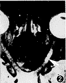 图2 SPIR-T2抑制眶脂肪信号后视神经病灶显示清晰