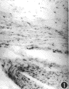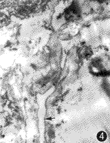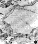图3,4 箭头示植入物中的小静脉及小动脉,内皮细胞及血管壁其他细胞