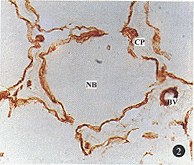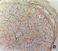 2.层连接蛋白(LN)的免疫过氧化酶阳性染色:其方式与Ⅳ型胶原蛋白相同(图3)。