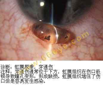眼睛,中华眼科在线,虹膜脱垂,穿通伤,眼科图谱