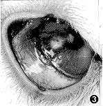 15%内毒素组:术后第3天可见新生血管开始向角膜内延伸,第9天集中朝向植入物生长的新生血管已达药丸周围并逐渐成包围状。