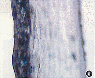 讨论 1.干细胞的增殖能力:1986年Schermer等[5]检测确定角膜缘基底细胞中部分细胞是唯一不表达角质蛋白K3的角膜上皮细胞,从而证实角膜干细胞位于角膜缘基底部。我们采用造血干细胞的脾CFE测定细胞增殖率显示,角膜缘干细胞在培养早期CFE较低,随着对培养环境的适应其增殖潜力逐渐发挥出来,明显较中央上皮细胞高,与Ebato等[7]的研究结果类似。细胞冻存复苏后测定的角膜上皮细胞CFE显示,角膜缘干细胞明显高于角膜中央上皮细胞。然而,由于细胞冻存复苏率普遍偏低,因此有待进一步研究新的细胞保存方法以满足实验的需要。