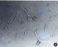 3.细胞冻存复苏率:按常规细胞冻存复苏方法,细胞复苏后CFE分别为角膜中央上皮细胞的(0.16±0.07)%、角膜缘细胞的(0.43±0.22)%,两者比差异有显著性(t=5.54,P<0.01)。