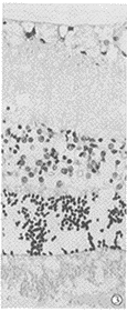 图8 正常组外核细胞排列整齐,间隙较密 ×8000