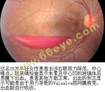 眼睛,中华眼科在线,玻璃体,后界膜下出血,眼科图谱