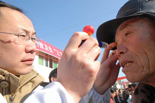 1月13日,安徽淮南市第一人民医院的眼科专家为曹庵镇农民义诊。新华社发(陈彬 摄)