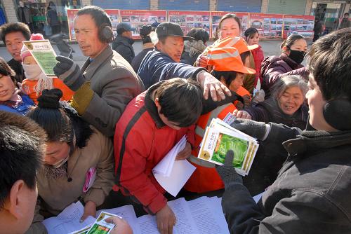 1月13日,淮南市农科所技术人员向群众免费发放蔬菜良种。新华社发(陈彬 摄)