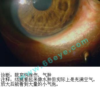 眼睛,中华眼科在线,眼窝钝挫伤,气肿,眼科图谱