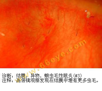眼睛,中华眼科在线,蛾虫毛性眼炎,眼科图谱,结膜,异物