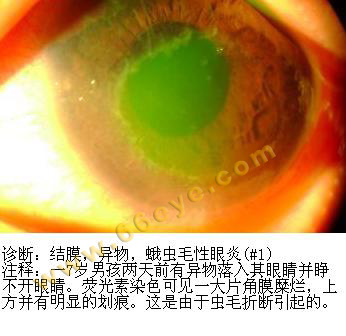 眼睛,中华眼科在线,蛾虫毛性眼炎,眼科图谱,结膜,异物